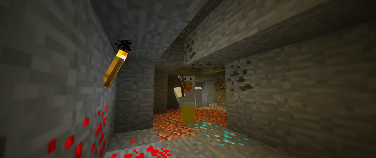 主トンネルから枝道を掘ること4本目、小さな空洞を掘り当てました。ごく狭い空間だったので敵が湧かないうちにすぐに松明で制圧します。