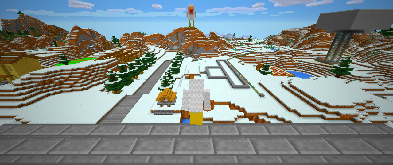 結局あまりスマートな解決方法だとは思えませんが崖に橋をかけて無理やり線路を通してしまうことにしました。このへんはまあ、マインクラフトなので、ちょっと非現実的すぎるくらいのほうが面白いだろうと自分を納得させます。