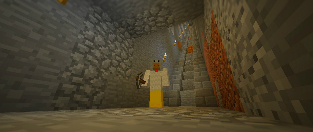 アイキャッチの画像、真ん中だけに階段が敷かれていませんが、いずれ中央部分にトロッコの線路を通したいと思っているからです(※2)。おそらくこの場所には頻繁に出入りすることになるでしょうから、いちいち歩いて昇り降りはしていられません。