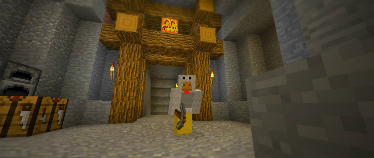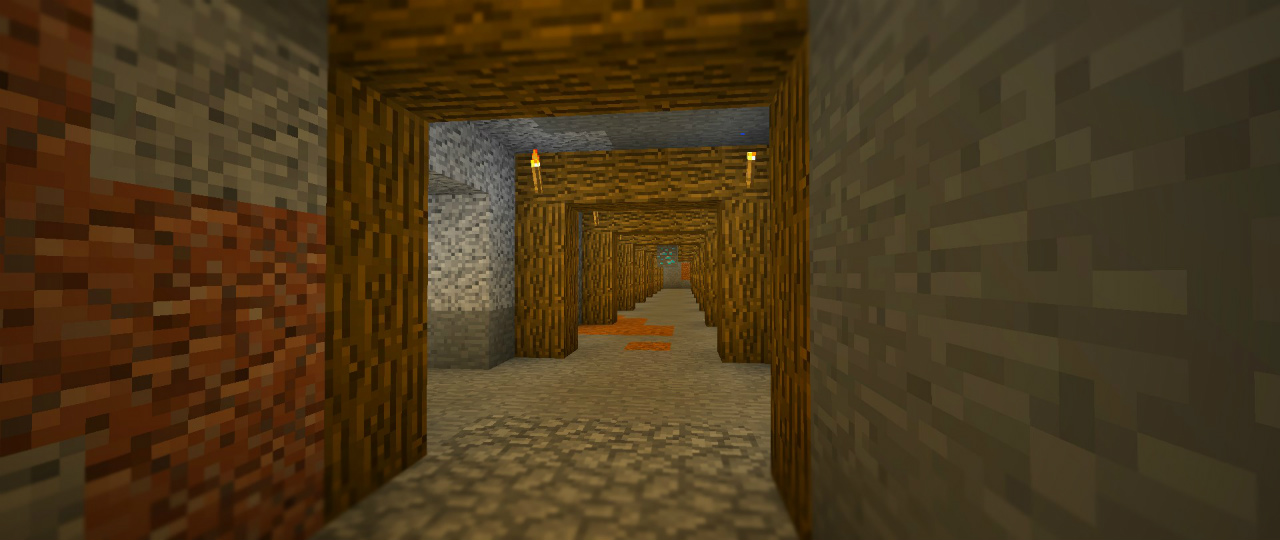 02.16 0 坑道2 Posted by suzuki in Minecraft 穴を掘り抜いただけで今ひとつ愛想のなかった坑道に装飾してみました。原木を使って留木(とめぎ)のような感じにしてみたのですが、少しは雰囲気が出たでしょうか。ついでにジャック=オー=ランタン(※1)も設置。うーん、これは存在感が強すぎて扱いが難しいブロックです。一気に怪しい雰囲気になります。 内部も同じようにします。支えがなくても崩落はしないんですけどね。 ※1 松明とカボチャでクラフトできます。 icon-arrow-circle-right次の記事へ