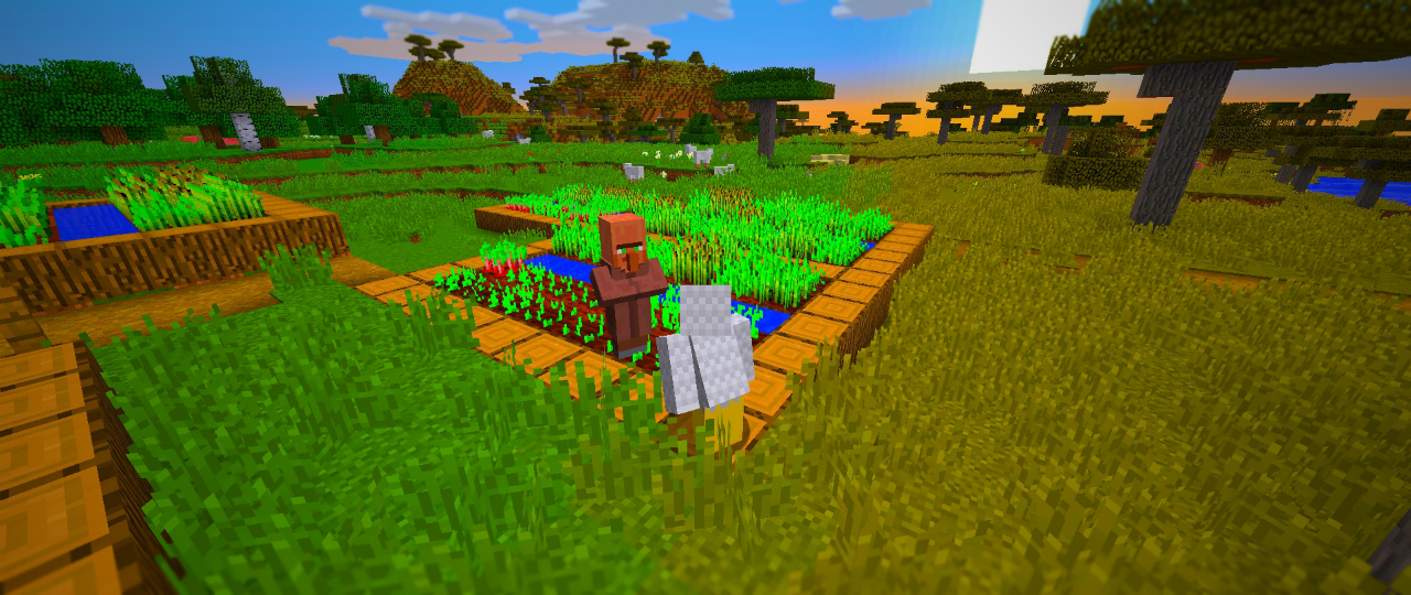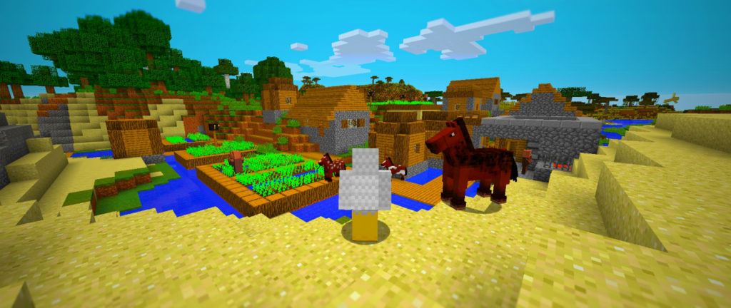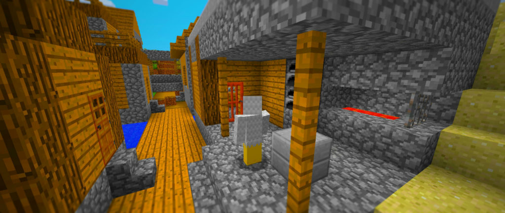 日も暮れてきたので手近な民家を借りて一泊します。翌朝、村を見まわってみると鍛冶屋の玄関に扉がついていません。ビートルートのお礼にドアをつけてあげました。適当にアカシアの木材で作ったため他の家と扉の見た目が違いますが、まあいいでしょう。