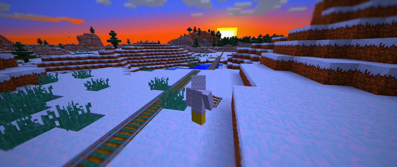 まずは線路を引くコースから決めなければいけません。地図を眺めて拠点の駅舎から経験値トラップまでの最適なルートを模索します。トロッコの性質上、できるだけ真っ直ぐにレールを伸ばしていきたい(※1)。とはいっても地味に凹凸のある地形が多いので、そういった場所はできるだけ避けるようにします。どうしてもそこを通らなければならない場合には、簡単なトンネルや橋を利用して直線を保つようにします。そして可能な限り最短距離で移動できるようにする。このように条件を絞っていくと、おのずとレールを引くことが出来る土地は限られます。