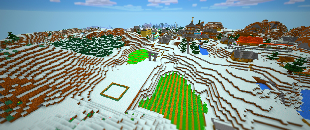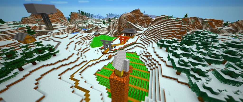主な施設を建て終えたら、今度は境内に木を生やしていきます。神社には「鎮守の森」が付き物ですね。形の良い木が育つまで、苗を植えては切り倒す作業を繰り返します。