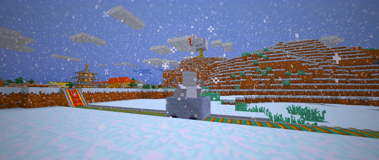 凍てついた川にかかる石橋は、全部で4箇所に設置されています。すべて同じデザインで統一しました。しかしシンプル過ぎて少し味気ない気もするので、「ひび割れた石レンガ」を混ぜたり、ツタを這わせてみても面白いかもしれません。