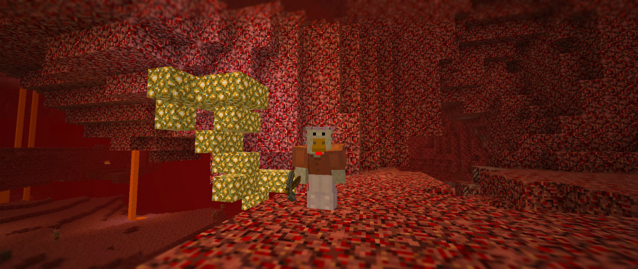 エンチャントされた剣をもっています。ちょっと欲しい気もしますが手出しは禁物です。ちなみにネザーの生物の多くは炎に対する耐性を持っています。このゾンビピッグマンも平気な顔をして火の上を歩いています。