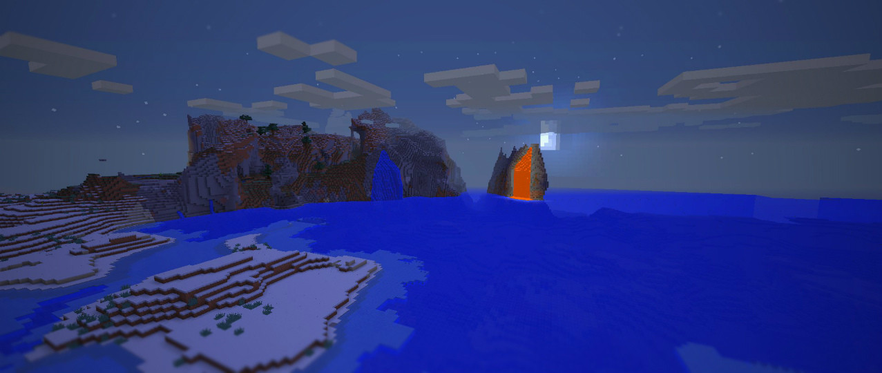 水中にはイカが泳いでいます。彼ら自体は無害なのですが、体当たりされるとボートがバラバラに壊れてしまうのが困りもの。できるかぎり避けて進みます。マインクラフトの世界のボートは壊れやすいので接岸するときなども注意が必要です。