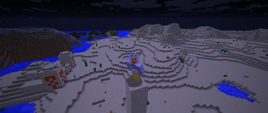 苦労して山岳を抜けると再び砂漠が広がっていました。遠くになにやら見覚えのある人工物が見えますが、あれはピラミッド。前回この建物を発見した時にはクリーパーに爆発されて大変なことになった記憶があります。同じミスを繰り返さないように、慎重に探検することにしましょう。