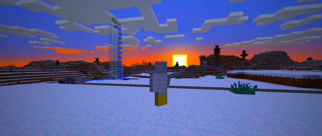 ところ変わってここは経験値トラップ前。今のところただの原野です。しかし、このままでは殺風景すぎますので、簡単な駅舎でも建てましょう。線路はまだ途切れとぎれなんですが、(飽きてきたので)気分転換に建築作業をします。
