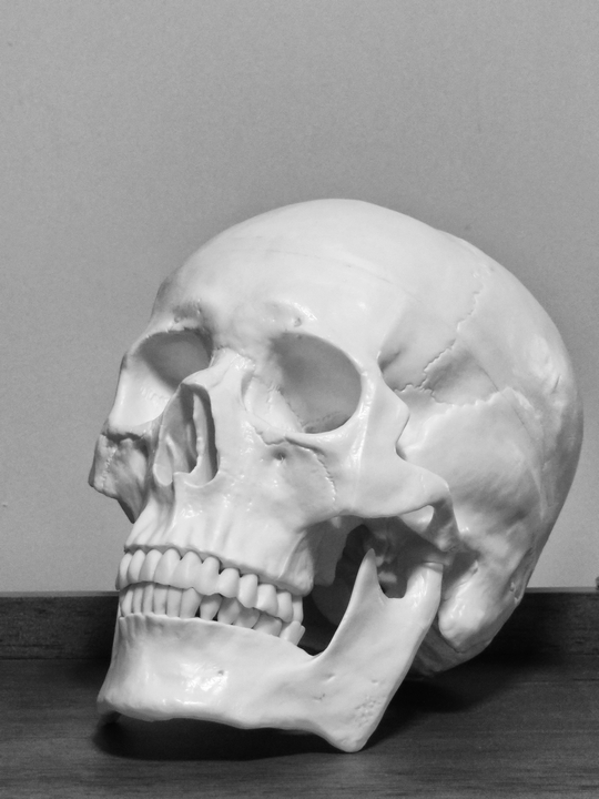 実物大の頭骨模型。某大手通販サイトで購入したのだけれど、値段の割に良いクオリティ。