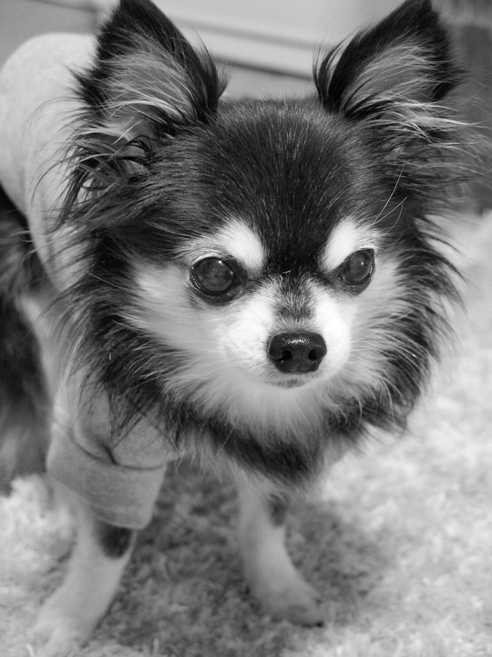 炙りベーコンを見つめるチワワ息子。さすがにこれは与えられない。