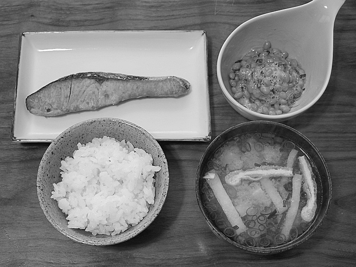 朝食の鮭は「甘塩」が良いです。しかし写真を見て思ったのだけれど、主菜(鮭)と副菜(納豆)の位置が逆なんじゃなかろうか。うーん。
