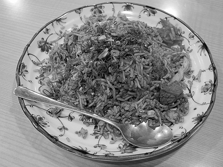 神戸市長田区で生まれたB級グルメ。ソース焼きそばにご飯を混ぜて炒め、細かく刻んだもの。
