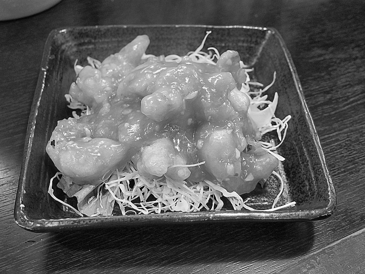 最後に海老のチリソースを注文。陳建民さんが乾焼蝦仁(カンシャオシャーレン)という四川料理を、日本人向けにアレンジした料理だそう。そういえば「ナポリタン」もケチャップの甘酸っぱい味付けですね。昔の人はこういう味付けが好みだったのかしらん。