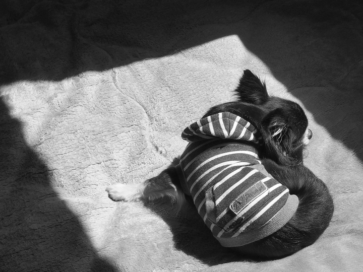 今日は快晴で、最高気温も20度以上。過ごしやすい季節になりました。窓の外が気になるのか、耳と鼻がさかんに動くチワワ息子。