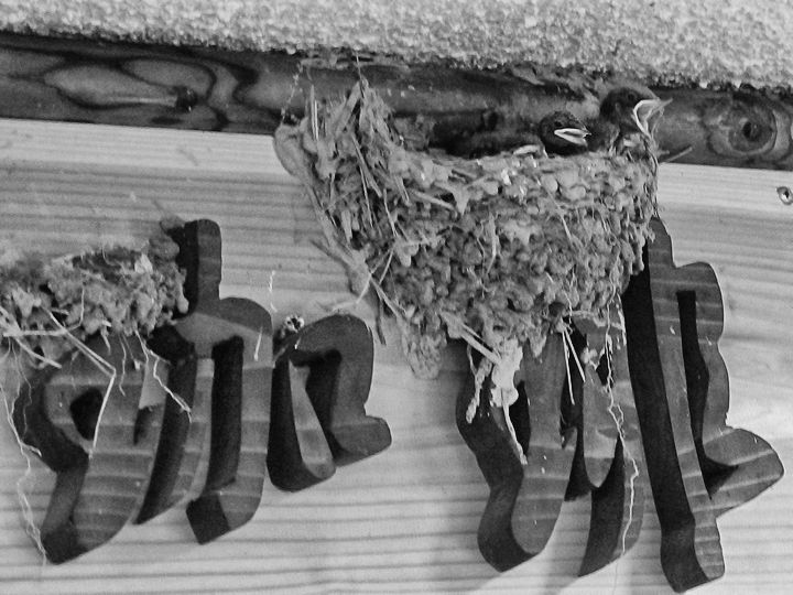 ここしばらく親ツバメが暖めていた卵が、やっと孵りました。雛は全部で4羽いるようです。