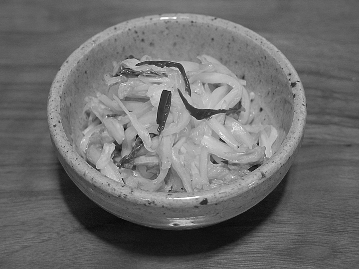 2017年8月2日 日々 辣白菜 「辣白菜(ラーパーツァイ)」というのは中華風の「白菜甘酢漬け」だそう。塩をして水気を切った白菜に、鷹の爪と千切り生姜を加え、そこに酢・砂糖・醤油を和える。熱したごま油で風味をつけて仕上げ。地味ながら良い味でした。 suzuki