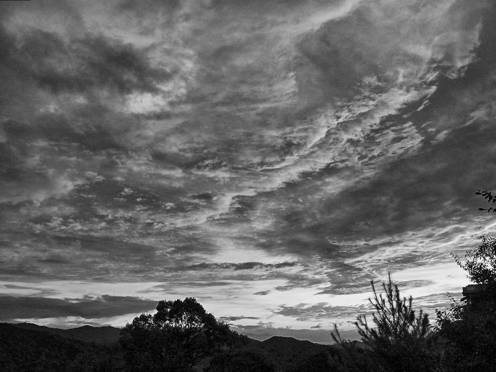 山の頂まで移動して空を見上げると、茜色に染まった雲が広がっていました。余談ですが、この山道では鹿や猿、兎といった動物たちを良く見かけます。