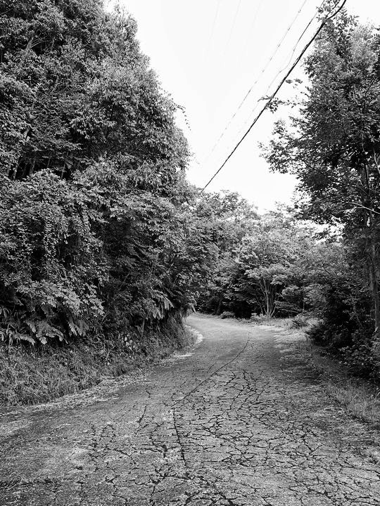 ヒグラシの大合唱の中、ひび割れた舗装道路を下って人里に戻りました。