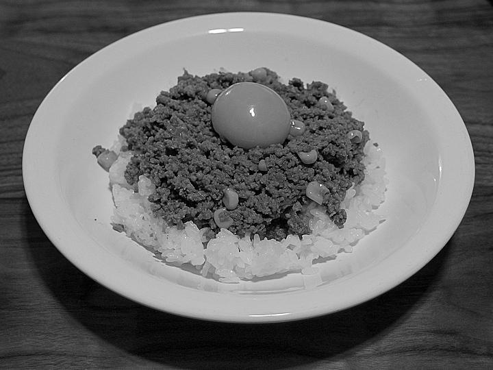 「キーマ」は“挽き肉”という意味だそうです。基本的な作り方は前に作った「チキンカレー」とほぼ同じですが、仕上げに生クリームを加えます。上に乗せた卵黄は、大阪名物「インディアンカレー」を真似てみたもの。 suzuki
