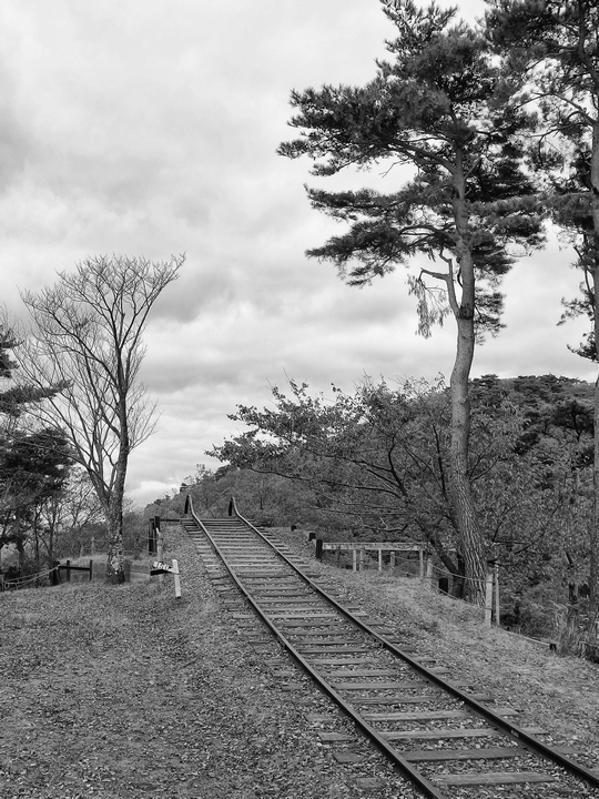 この山には不思議なオブジェがいくつか設置されていて、この線路もそのうちの一つ。『銀河鉄道の夜』を思い出します。