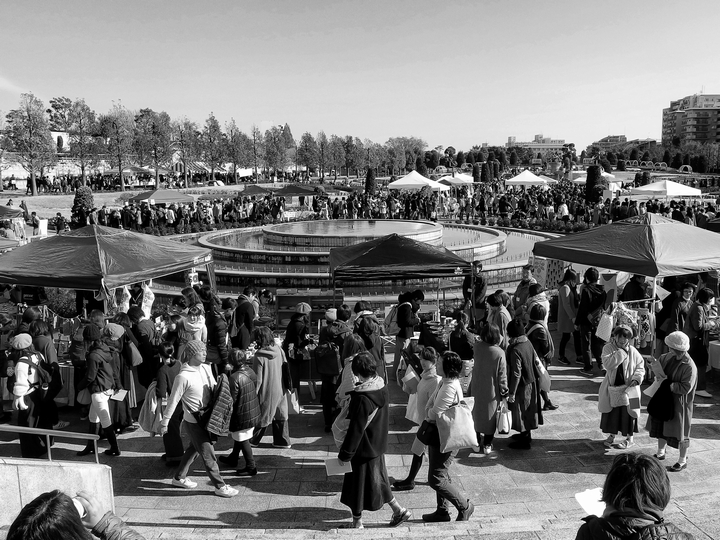 今日は「蚤の市」にやってきました。雲ひとつない晴天で、どの店も黒山の人だかりです。