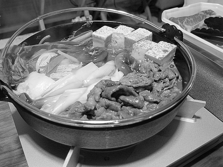 普段あまり食べることのないすき焼きですが、大晦日には欠かせません。鉄鍋で焼き付けると肉が香ばしくなって良い感じです。具材は牛肉・白ネギ・白菜・菊菜・シイタケ・焼き豆腐。牛脂と卵も忘れずに用意しましょう。「割り下」は醤油・みりん・酒を等量あわせて作ります。