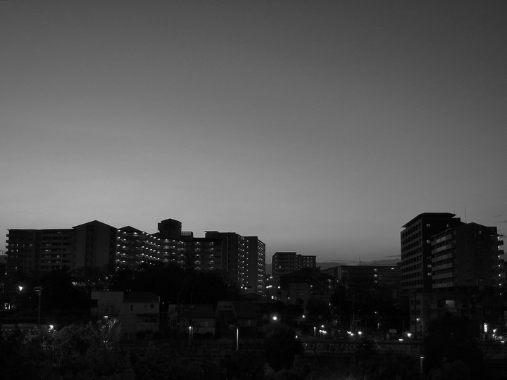 冬のたそがれ時、別名オウマガトキ。見慣れている筈の集合住宅群が、異界じみた雰囲気をかもし出していました。