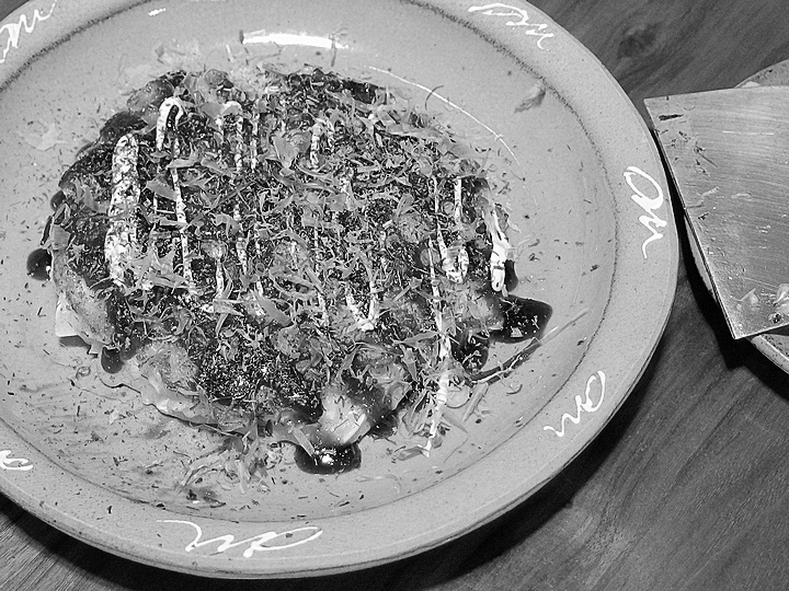 意外なことに、家で作る「お好み焼き」をまだ載せていませんでした。市販の粉に卵・キャベツ・長芋などを入れ、豚肉を乗せて焼きます。焼けたらお皿に取って青のり・かつお節・ソースをかけて出来上がり。 suzuki