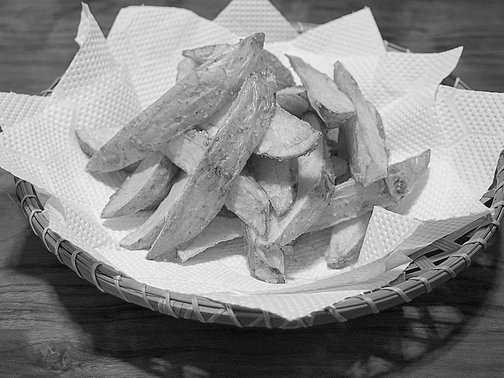 油が余ったので、ジャガイモなど揚げてみました。シンプルに塩だけでいただきます。