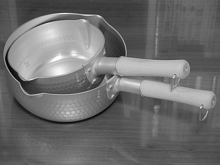 熱伝導率の良いアルミ鍋を、新たに二つ購入しました。調理に掛かる時間を短くし、作業の効率化を図るためです。商品名は谷口金属「秀華 深型ゆきひら鍋」。