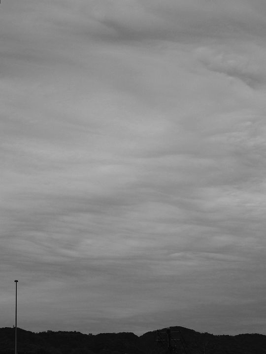 今日は久しぶりの雨降り。乱層雲がどこまでも広がり、空を覆っています。