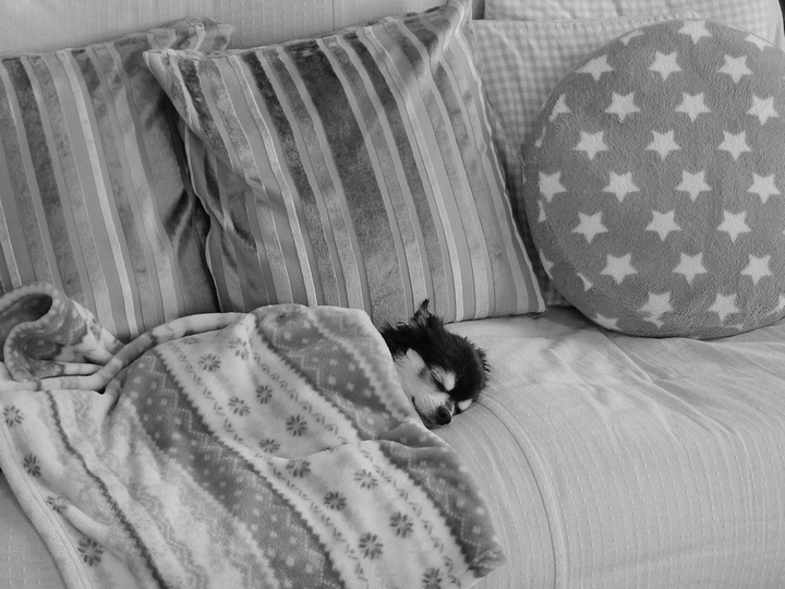 すっかり過ごしやすい季節になりました。開け放した窓を、心地よい風が通り抜けていきます。写真はソファーで昼寝するチワワ息子。