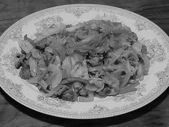2018年5月24日 日々 肉野菜炒め 今日は冷蔵庫の残り野菜と豚肉で炒めものを。肉には片栗粉をまぶし、先に焼いて出しておく。野菜は弱火~中火で時間をかけて水分を飛ばす。味付けは塩・コショウ・ガラスープ・醤油など。 suzuki