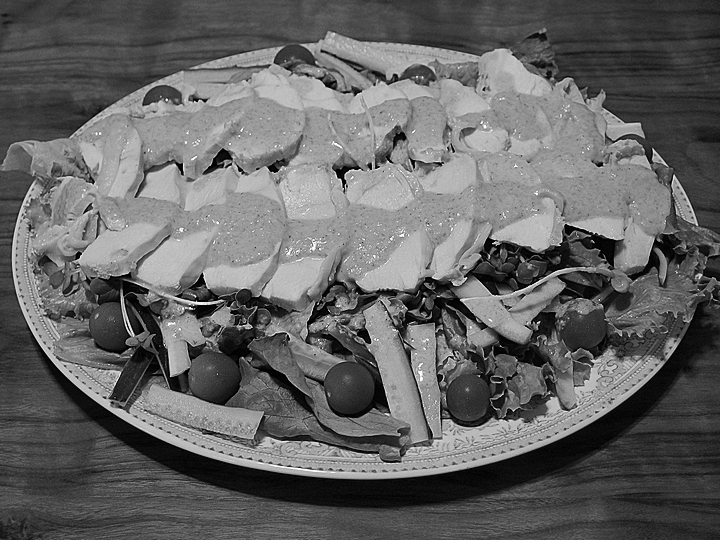 「蒸鶏のサラダ」は色々なソースを試していますが、今日はごまダレ。味噌・マヨネーズ・醤油・すりゴマ・ごま油・酒などを混ぜたもの。