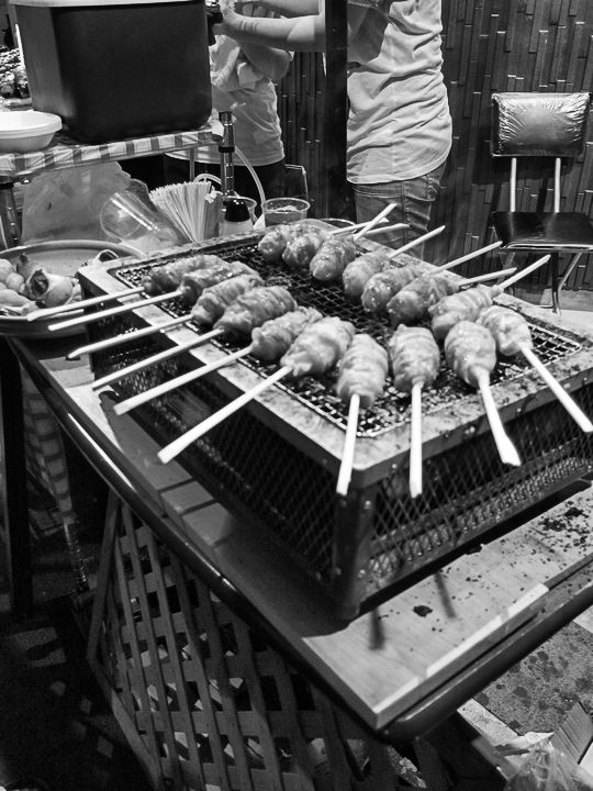 2018年7月30日 日々 肉巻きおにぎり 盆踊りの会場で珍しい食べ物が売られているのを発見。俵型のおにぎりに豚肉の薄切りを巻きつけ、タレとともに炭火で炙ったもの。宮崎県の「ご当地グルメ」だそうです。 suzuki