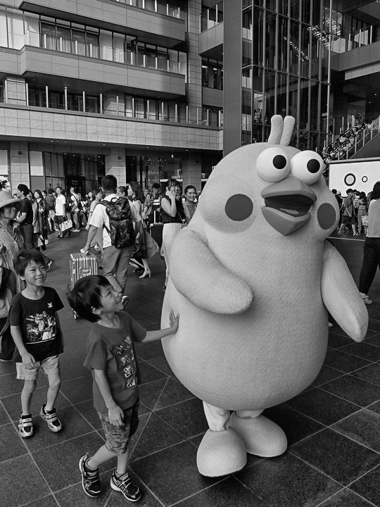 酷暑の中、駅前をヨタヨタと歩く着ぐるみ。なんの動物かと思って調べてみたら「インコ」でした。