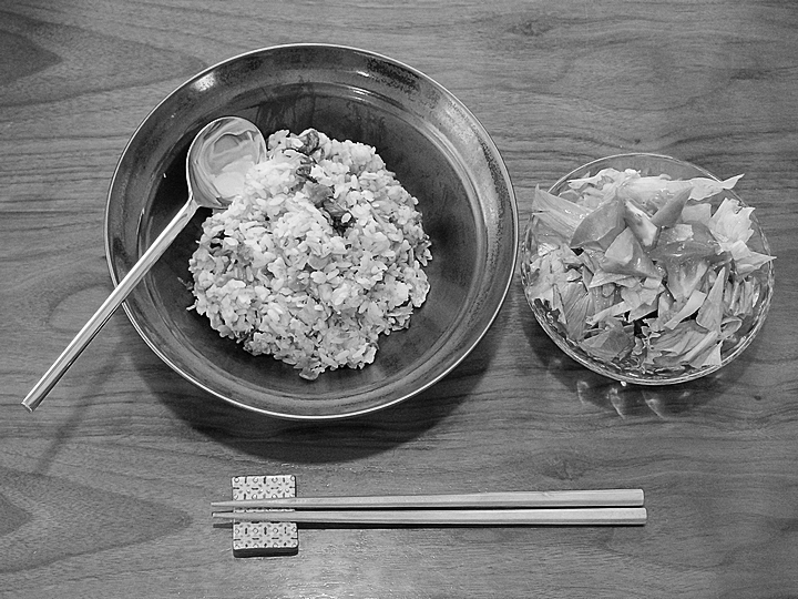 干貝柱の戻し汁を使った炒飯など。朝鮮スプーン(スッカラ)は「ご飯もの」を食べるときにも活躍します。
