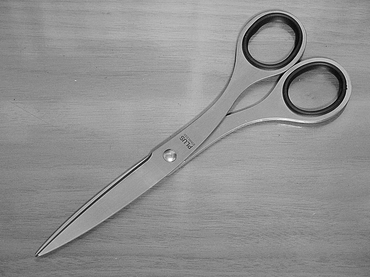 テープディスペンサーと同じく「見た目」で選んだハサミ。商品名はプラス「ステンレスハサミ 刃渡り69mm NO.165」。性能でいえば同社の「フィットカットカーブ」の方が良いのですが、美しいのはこちら。 suzuki