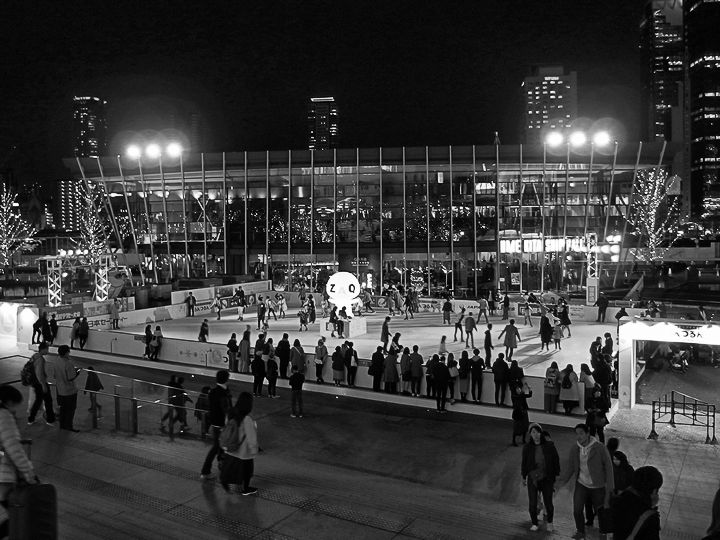 12月になりました。この時期になると、駅前広場にスケートリンクが出現します。