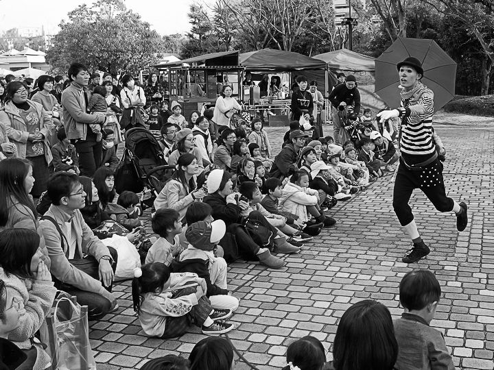 大道芸を楽しむ人々。