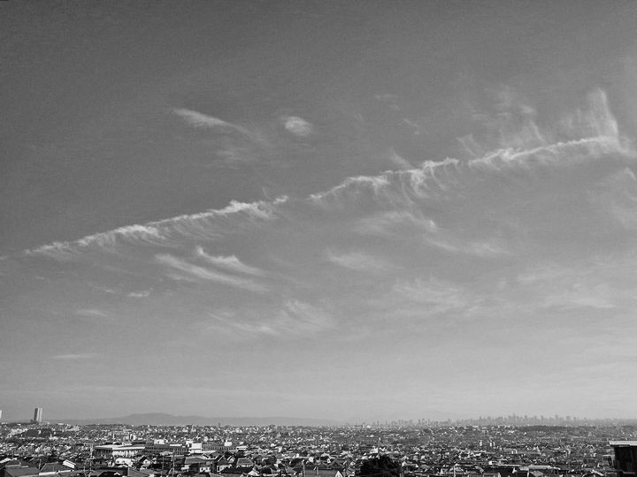 久しぶりに暖かな日。空を見上げると「すじ雲」が広がっています。