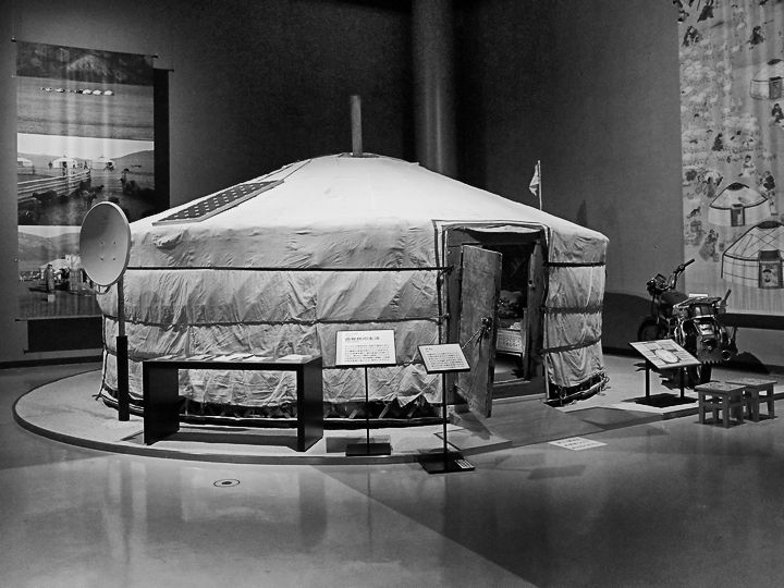 モンゴルの遊牧民が利用する移動式住居。最近のものはアンテナやソーラーパネルも完備。