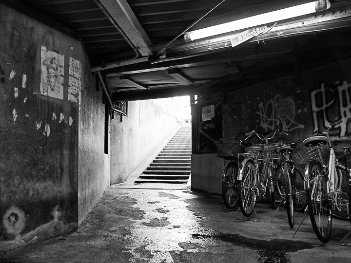 地下に作られた駐輪場。なかなか面白い雰囲気。