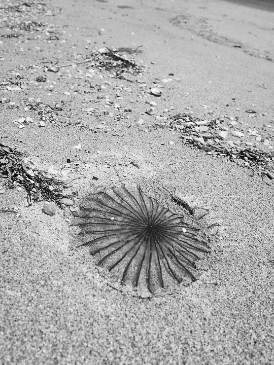 砂浜に打ち上げられた海月(くらげ)。形からしてアカクラゲの仲間でしょうか。
