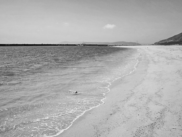 波は穏やかですが、空は白く烟(けぶ)っています。