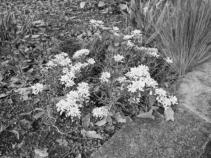前回の散歩に引き続き、広角レンズの練習をしたことでした。写真は道端に咲いていた花で、おそらく「イベリス」の一種かしら。