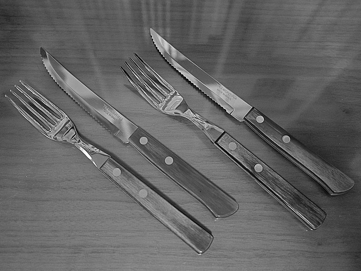トラモンティーナ「ポリウッド ステーキナイフ・テーブルフォーク」のセットを購入。小ぶりで軽く、使いやすそうです。