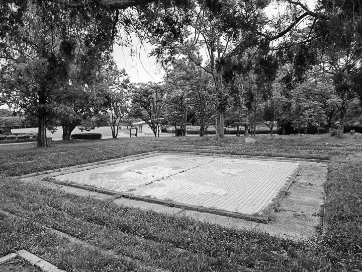 森のなか、地面に埋め込まれた世界地図を見つけました。