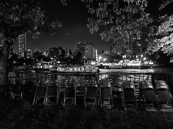 花火の打ち上げ終了とともに、帰り支度を始める見物客。祭り自体は、この後の宮入りまで続きます。