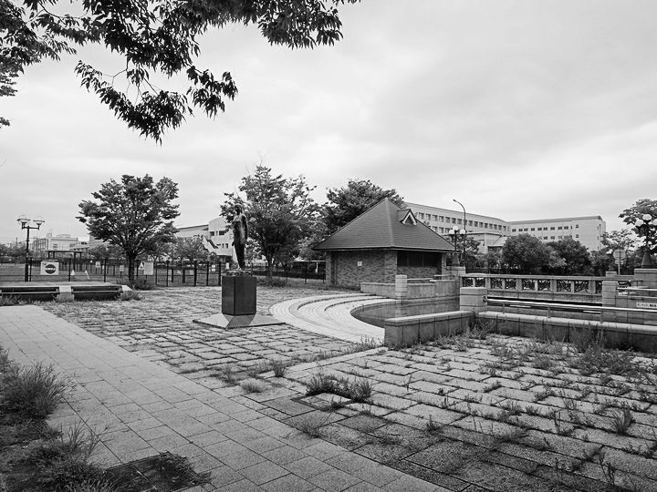 石畳の隙間から伸びる雑草。小雨が降っています。